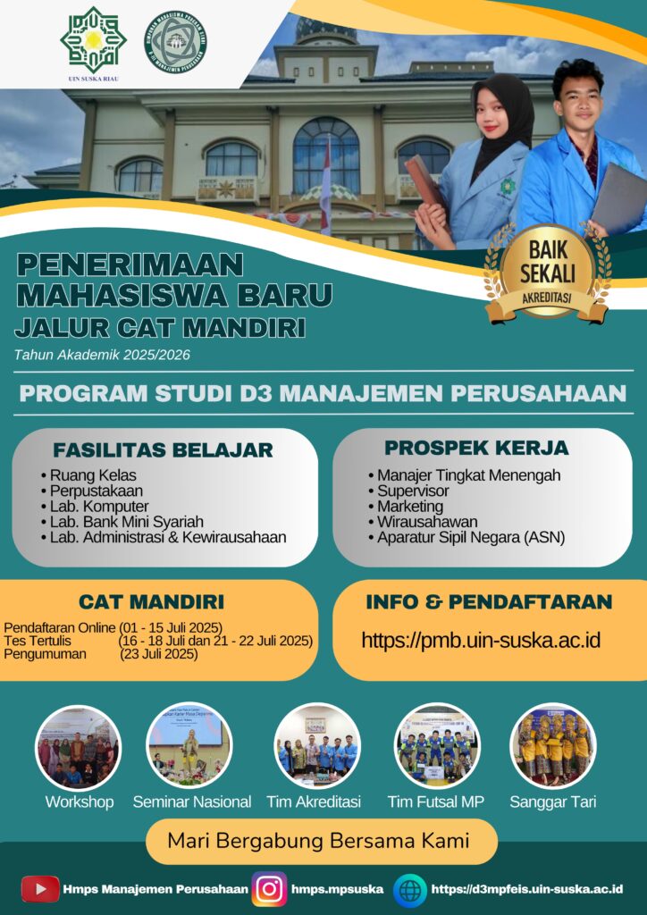 PENERIMAAN MAHASISWA BARU JALUR CAT MANDIRI PROGRAM STUDI D3 MANAJEMEN PERUSAHAAN TAHUN 2025/2026